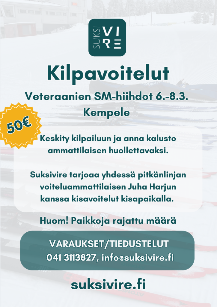 Kisoissa on paikalla paikallinen suksihuolto Suksivire joka on paikalla tekemässä urheilijoille kisahuoltoja.